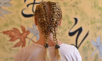 • Вставка ленточек в волосы (создание прически вместе с лентами)